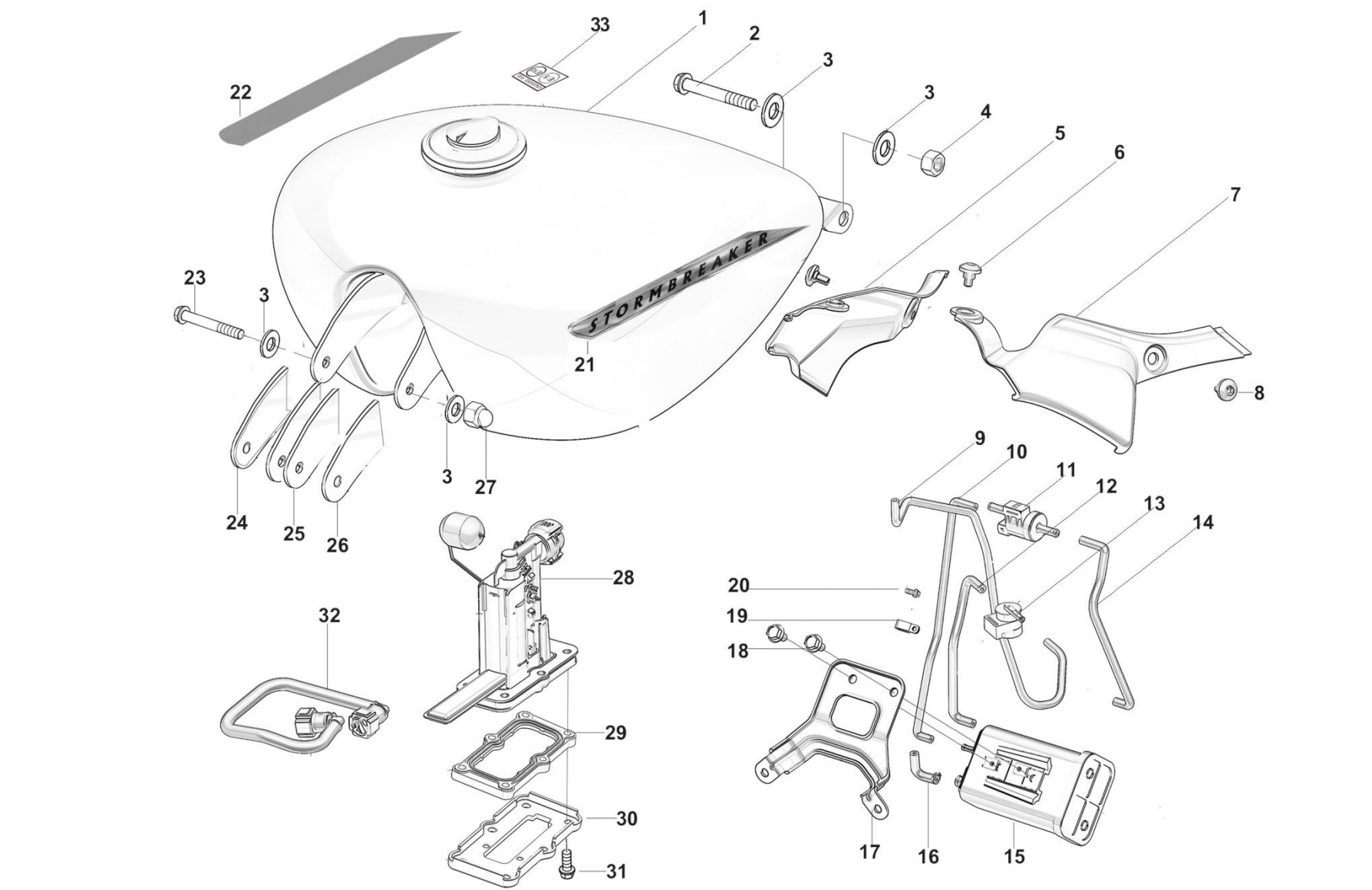 Trim Cover, Tank (Left Front) – Przednia lewa osłona dekoracyjna zbiornika SWM Stormbreaker MY2024 1200 Kod OEM: 53390208 Trim Cover, Tank (Left Front) – Przednia lewa osłona dekoracyjna zbiornika SWM Stormbreaker MY2024 1200 Kod OEM: 53390208 53390208 15 1 - +