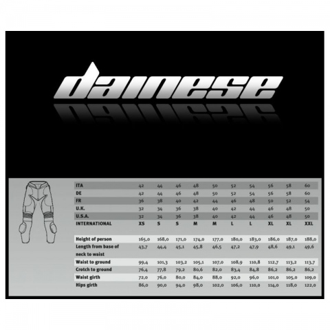 Sportowe spodnie marki Dainese zaprojektowane i wykonane z dbałością o najmniejsze detale to połączeniebezpieczeństwa i funkcjonalności z oryginalnym, charakternym stylem. Odporna na ścieranie skóra TUTU - z której zostały uszyte - oraz certyfikowane ochraniacze bioder i kolan gwarantują bezpieczeństwo i doskonałą ochronę. Regulacja w biodrach oraz tkanina S1 uzupełniona wstawkami z elastycznego materiału zapewniają doskonałe dopasowanie oraz komfortową swobodę ruchów. Skrojone tak, by współgrać z kurtkami sportowymi marki Dainese.