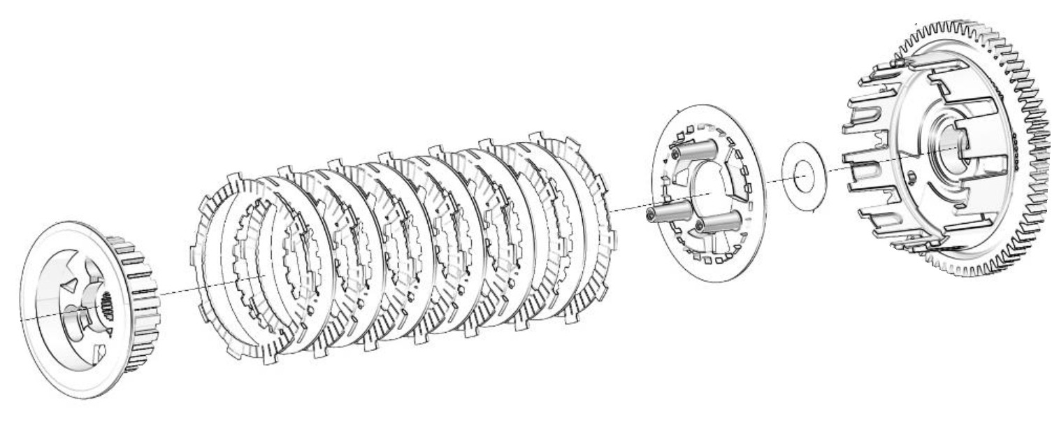 Oryginalny kosz sprzęgłowy stosowany w silnikach SWM. Jest centralnym elementem układu sprzęgła, w którym osadzone są tarcze cierne i stalowe. Odpowiada za przenoszenie momentu obrotowego z wału korbowego na skrzynię biegów oraz stabilną pracę całego zespołu sprzęgłowego. Wykonany z wytrzymałego, hartowanego stopu, odpornego na uderzenia, ścieranie i długotrwałe obciążenia.