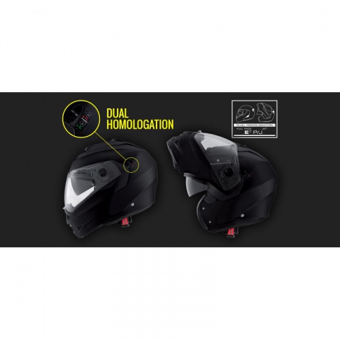 Podwójna homologacja (E3/P) na kask integralny i szczękowy oraz 5/5 gwiazdek SHARP odznaką najwyższych standardów bezpieczeństwa.