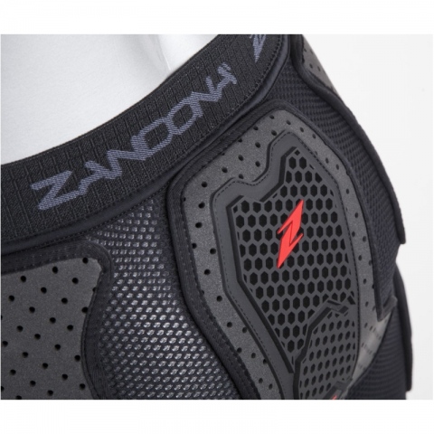 Wyposażone w protektory chroniące biodra, kość ogonową,