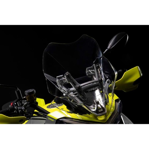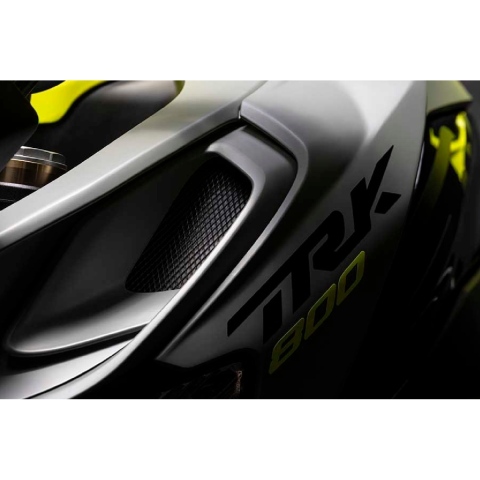 Konstrukcja TRK 800 charakteryzuje się płynnymi, falistymi i mocno współczesnymi liniami, które łączą się z eleganckimi i wyrafinowanymi powierzchniami, jakby chciały podkreślić rosnące emocje, jakie ten motocykl jest w stanie zaoferować, przygoda po przygodzie. Zachowując rodzinną atmosferę gamy TRK, ta nowa przygoda ewoluuje w dobrym stylu z zamiarem uczynienia niektórych elementów obecnych w wersji 500 ikonicznymi, takich jak przód i przedni błotnik, które tutaj są bardziej zwężone i dynamiczne, podwójnie łukowate reflektory, które w TRK 800 znajdziemy w pełni LED z DRL, oraz muskularny charakter motocykla, który wyraża się tutaj nową proporcją objętości.