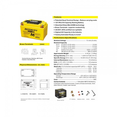 Motobatt produkowany w technologii AGM, jest gotowy do użycia bez konieczności zalewania i ładowania ,dzięki użyciu nowszych mat wykonanych z włókna szklanego, całkowicie absorbujących kwas i jest pełni naładowany.