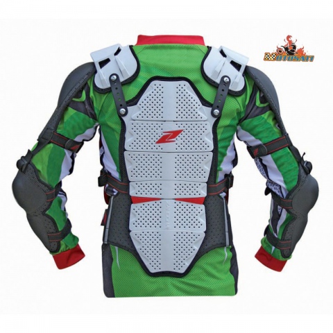 Spartakus ma osłony z materiałów oddychających klatki piersiowej, ramion, obojczyka , łokci i Ochraniacz kręgosłupa Shark EVC .