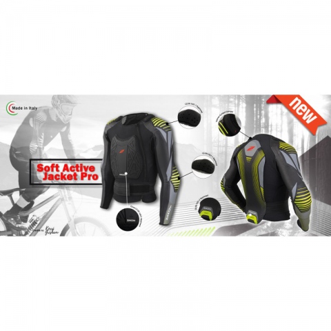 "Soft Active Jacket Pro" to w 100% wykonana we Włoszech kurtka bezpieczeństwa Multisport, składająca się z Back Protector (certyfikat CE EN1621-2 Lev.2), Chest Protector (certyfikat CE EN14021), osłona ramion i żeber.