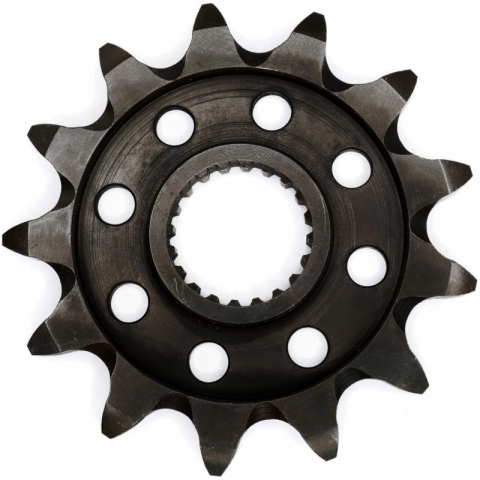 Przednie koła zębate w czarnym cynku RFX Pro są obrabiane CNC w najwyższych tolerancjach ze stali o wysokiej wytrzymałości oraz hartowane skrzynkowo w 60 Rockwell, aby wytrzymać zużycie i zapewnić długowieczność. Koła Pro Series posiadają również otwory obniżające wagę i samooczyszczające się rowki błotne po obu stronach, które są odporne na gromadzenie się brudu i pomagają przedłużyć żywotność zębatki i łańcucha napędowego. Nowością na rok 2016 są wykończone czarnym cynkiem wykończeniem, które pomaga zwalczać łagodną korozję (rdzę) spowodowaną przez mycie motocykla w porównaniu z nieocynkowanymi zębatkami i nadać maszynie fabryczny wygląd.