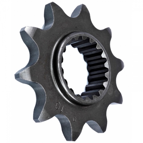 Przednie koła zębate RFX są obrabiane CNC ze stali o wysokiej wytrzymałości na rozciąganie i hartowane skrzynkowo do poziomu 60 Rockwell, aby wytrzymać duże przeciążenia i być odporna na zużycie.