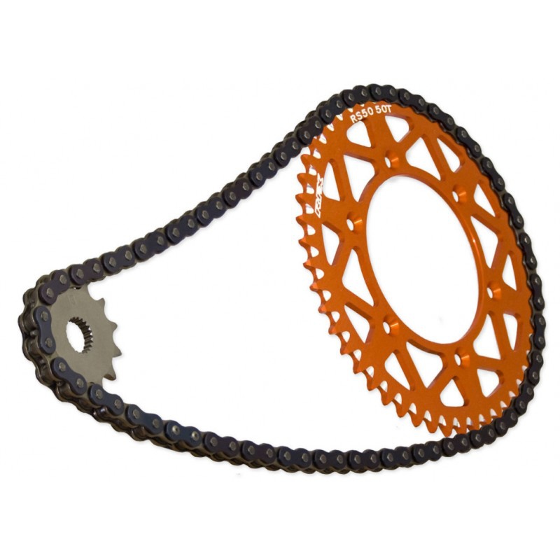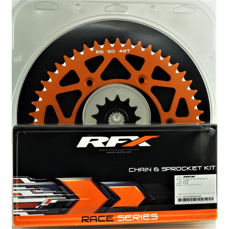 Seria wyścigów RFX Przednie koła łańcuchowe są CNC obrobione z wysokiej wytrzymałości stali i skrzynki hartowanej do 60 Rockwell w celu ochrony przed zużyciem. Koła zębate RFX posiadają również otwory wybijające w wybranych modelach, ale tylko wtedy, gdy nie będzie to miało wpływu na trwałość.