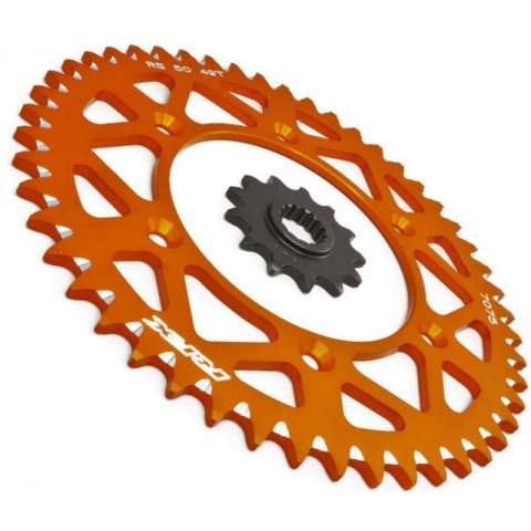 Seria wyścigów RFX Przednie koła łańcuchowe są CNC obrobione z wysokiej wytrzymałości stali i skrzynki hartowanej do 60 Rockwell w celu ochrony przed zużyciem. Koła zębate RFX posiadają również otwory wybijające w wybranych modelach, ale tylko wtedy, gdy nie będzie to miało wpływu na trwałość.