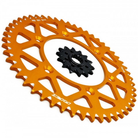 Seria wyścigów RFX Przednie koła łańcuchowe są CNC obrobione z wysokiej wytrzymałości stali i hartowanej w celu ochrony przed zużyciem. Koła zębate RFX posiadają również otwory wybijające w wybranych modelach, ale tylko wtedy, gdy nie będzie to miało wpływu na trwałość.