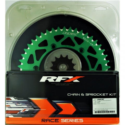 Seria wyścigów RFX Przednie koła łańcuchowe są CNC obrobione z wysokiej wytrzymałości stali i skrzynki hartowanej do 60 Rockwell w celu ochrony przed zużyciem. Koła zębate RFX posiadają również otwory wybijające w wybranych modelach, ale tylko wtedy, gdy nie będzie to miało wpływu na trwałość.